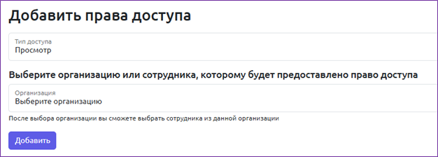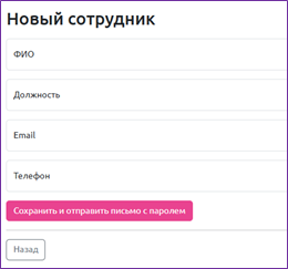 Список сотрудников организации доступен во вкладке «Сотрудники». Для каждой организации возможно добавить сотрудника, который автоматически наследует роль этой организации. Для этого необходимо нажать на кнопку «Добавить сотрудника» внутри организации и заполнить следующие поля: