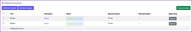 После загрузки материала Система автоматически замеряет его реальных хронометраж.